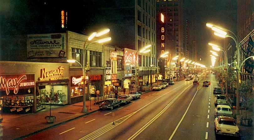 As detailed in the first part of this article, the south end of Chicago’s State Street shopping district had been in a state of substantial decline for decades. Sixteen years after Chicago’s former Central Library began moving out of its long-time home on Michigan Avenue into a series of temporary quarters, the new Harold Washington Library Center (HWLC) was dedicated on October 4, 1991, a fitting tribute to a mayor who championed a world-class new central library. Not coincidentally, HWLC was built on a block that until the 1980s had been home to many marginal and unsavory businesses.